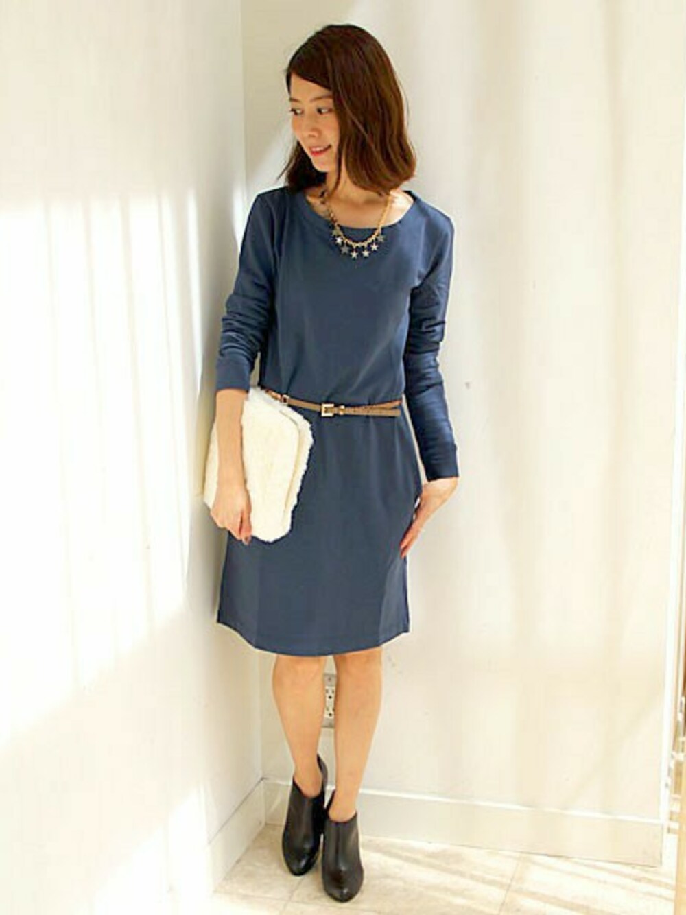 カジュアルなコットンワンピースは、シンプルデザインなので、アクセなどの小物周りでアレンジが楽しめます。