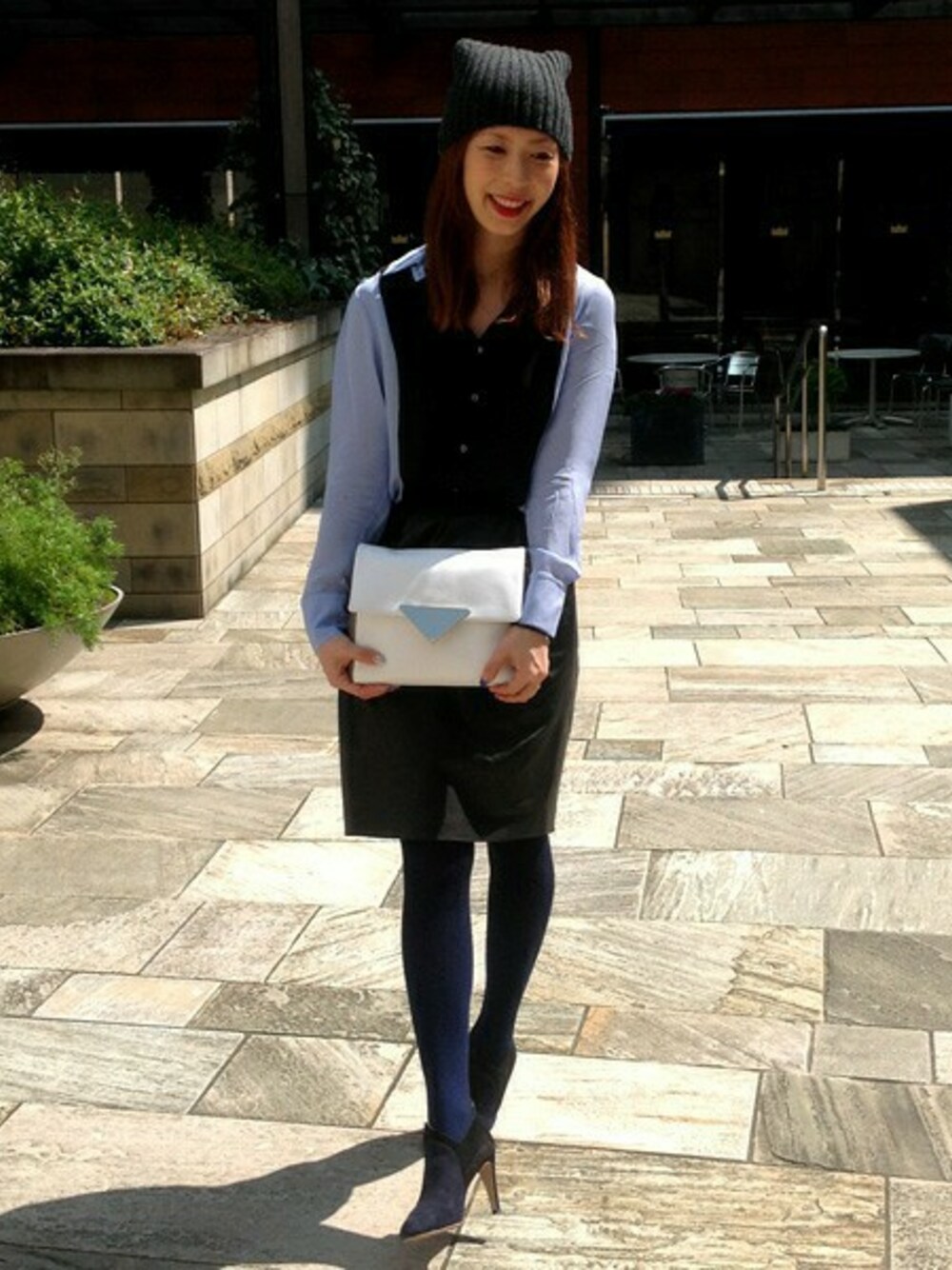 ユナイテッドアローズ 六本木ウィメンズストア 今年はレザーアイテムが気になります!ライダースジャケットも気になるけれどもう少しソフトな雰囲気もいいな・・・。そんな方にはユナイテッドアローズのレザースカートがおすすめです。タイトシルエットの上品なスカートにシャツ+クラッチバッグでスッキリまとめ、最後にニット帽をプラスすれば今年らしいエレガンスモードの完成です♪