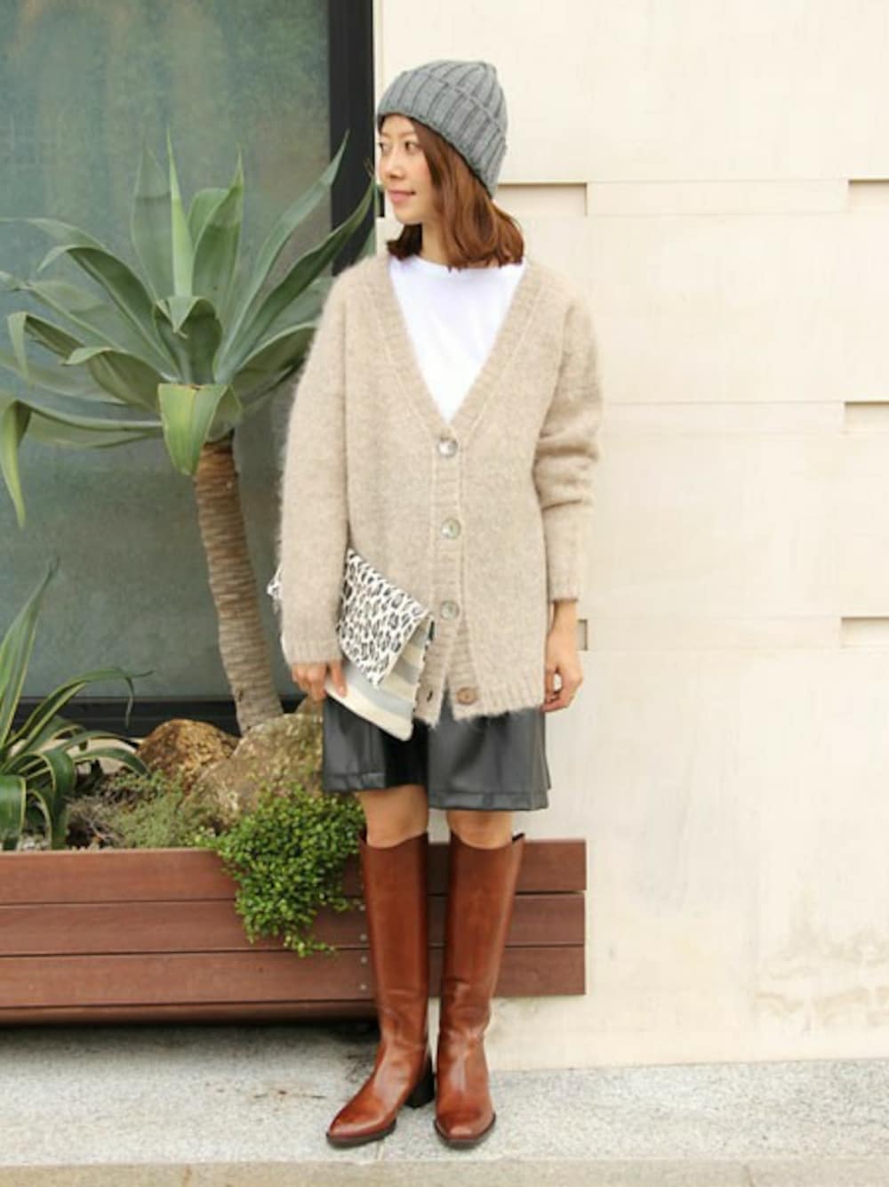 UNITED ARROWSのスカート「SFL フェイクレザー フレアースカート†」を使ったコーディネート