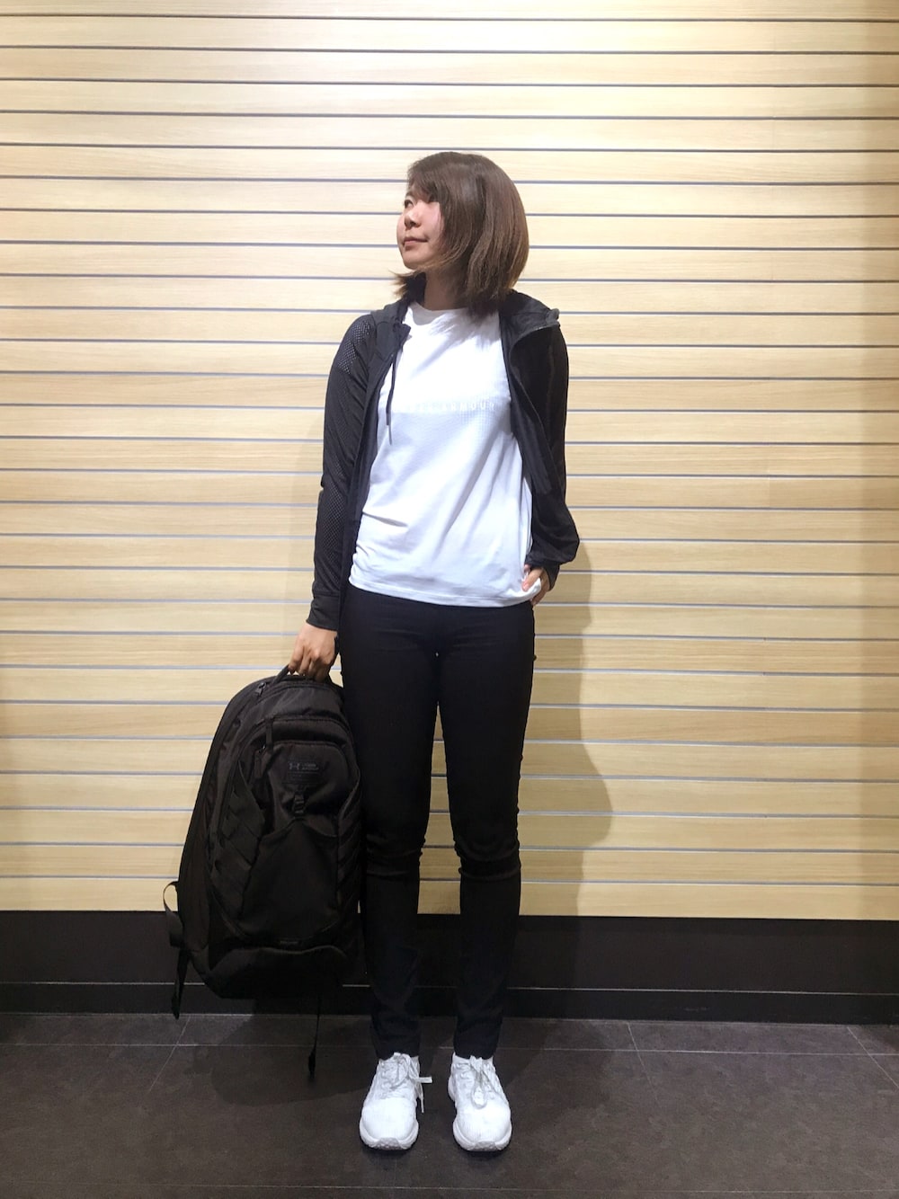 シンプルコーデ! トップスのTシャツにはうっすらとUnder Armourのロゴが入ってます。