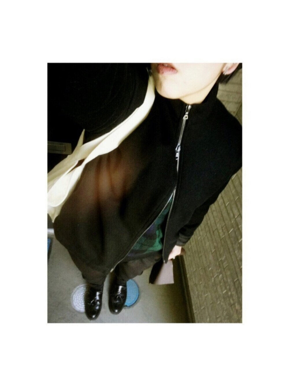 先日、福島県に初めて行きました。 しかもレンタカー借りて運転。 死ぬかと思ったよ、本当に。 ペーパードライバーのくせに連続3時間の運転はちょっと……… 一緒に行った人が免許ない人なので、代わることもできず。 計7時間ほどの運転、お疲れ様でした。笑 そんだけ頑張った甲斐ありましたよ!! 鶴ヶ城は人も全然いなかったし、紅葉も綺麗だったし。 帰りに東山温泉の東鳳に行って温泉入って。 弾丸で行ったわりに楽しめました。 さて、今日のコーデの話するか。 今日のアウターは、バイト先の人から貰ったA.P.C.のブルゾンです。 ダブルジップなので、下開けました。 フレペのニットも解禁してしまったよー。 今日も安定の真っ黒で行きましょー。