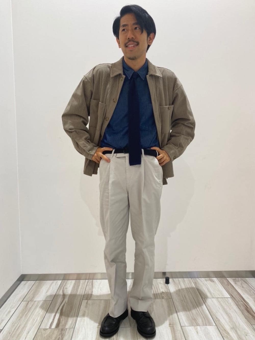 【身長172cm】秋冬素材のCPOをメインにデニムシャツにタックパンツでカジュアルでありながら、少しフォーマル感のある秋の装いを意識しました