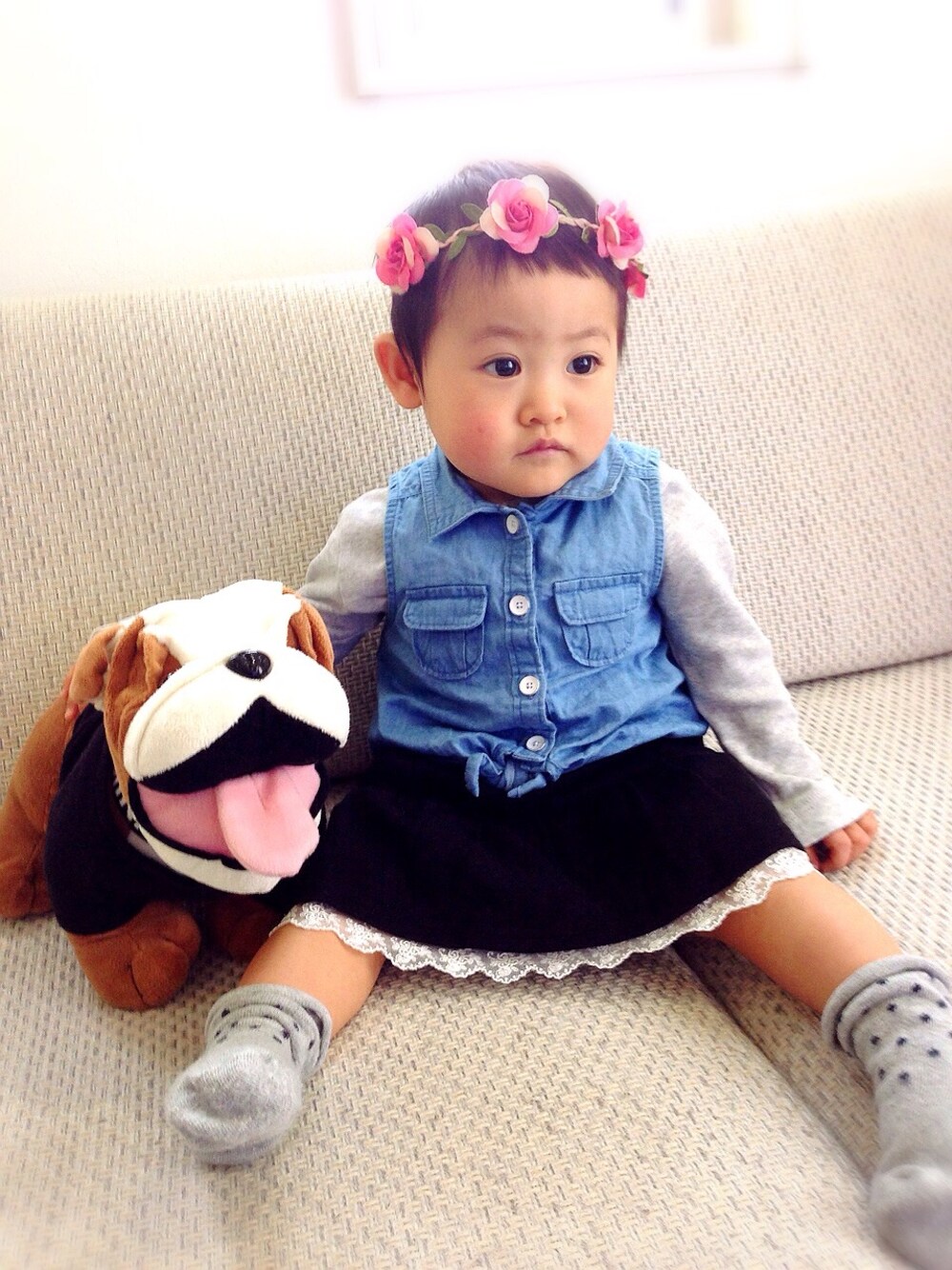 *最近仲良くなった友達と 花冠つけて春コーデ*