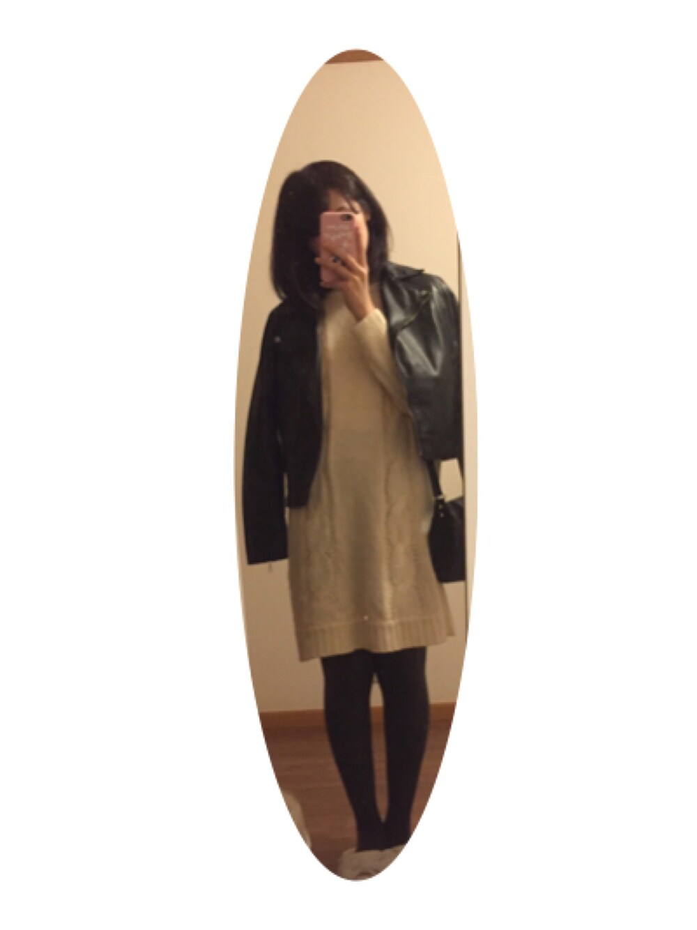 ニットワンピ×ライダース 友達とカラオケに行きました^_^