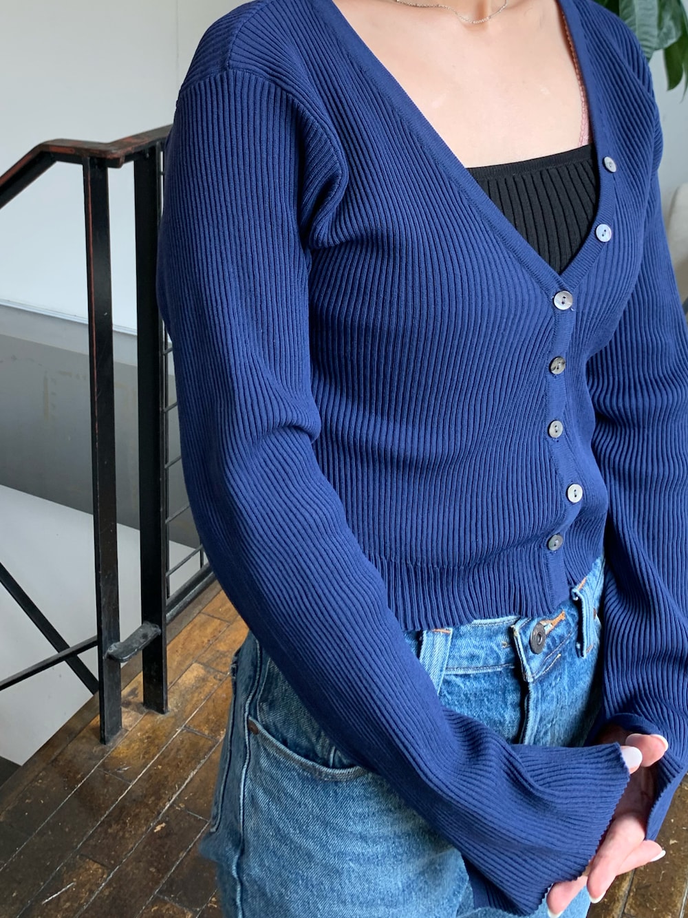 moon のカーディガン/ボレロ「NEW Vリブショートカーディガン」を使ったコーディネート