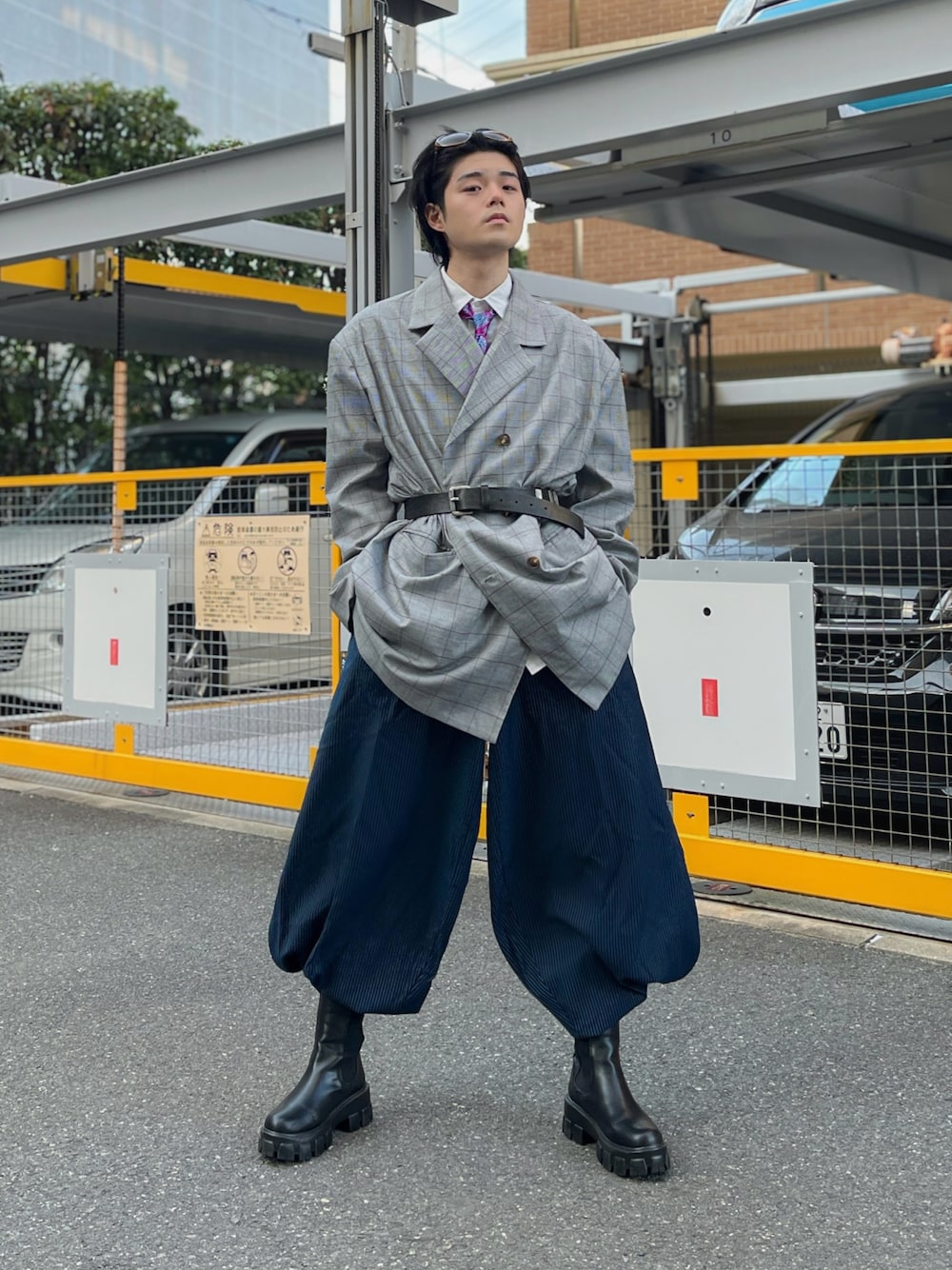 身長:169.5cm 体重: 54.5kg 骨格: ウェーブ 【テーラードジャケット】 かなり大きめなので、体が小さい方は 写真のようにベルトを巻くだけでも 体に固定されて着こなしている感が出ると思います! 【鳶職パンツ】 これはKinjiという古着屋さん?で買ったアイテムです! 普段からワイド系のパンツを履いていて シェイプに少し飽きてきた人にはおすすめかもです! 元々かなり大きめに作られていますが ズボンの裾が細くなっているので 地面につかないというすごい綺麗な形を持ったズボンになります笑 【サイドゴアブーツ】 これはいうまでもなく 本当に一個は安くてもいいので持っておいた方がいいと思います! うん。年中使えます! 理由はこのスタイリッシュさとノーマルさですね。 オーバーサイズなアイテム達と合わせると スタイリッシュさで一差し入れることもできるので使い勝手本当にいいです!
