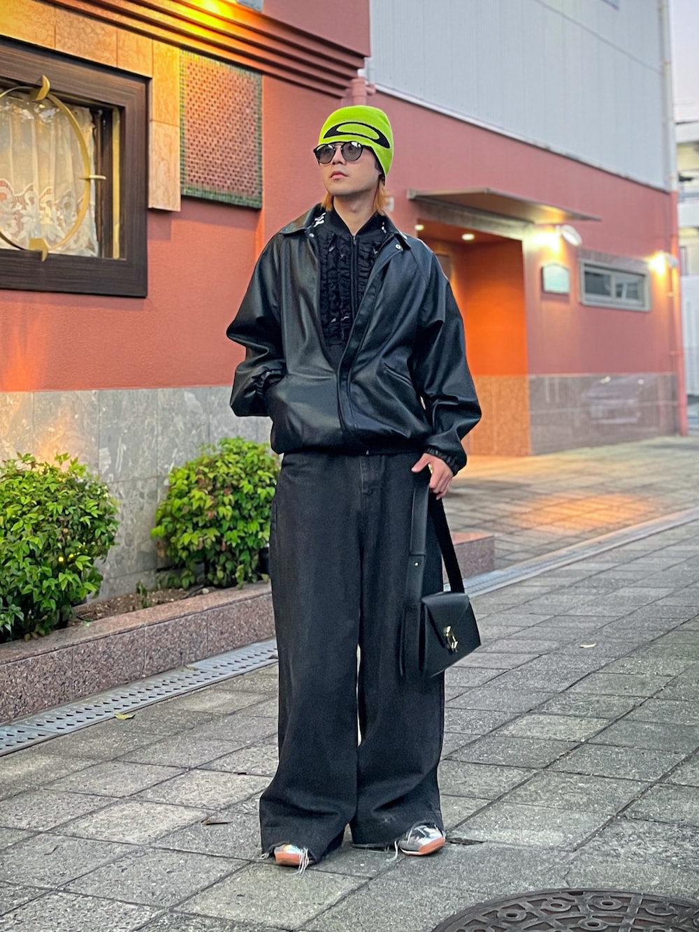 今回は、全身をブラックで統一しつつ、 ネオングリーンのニットキャップを アクセントに取り入れたモードなストリートスタイルを提案します🥝🍏 レザージャケットとワイドパンツの組み合わせで、 ボリューム感を出しつつも、 シンプルで洗練された印象を与えています。 全体がブラックで引き締められているため、 ビーニーのネオンカラーが鮮やかに映え、 視線を引きつけるポイントになっています✨ さらに、シルバーのシューズで個性をプラスし、 モード感とストリート感のバランスを絶妙に調整。 小ぶりなバッグを持つことで、 シンプルながらも洗練された印象をキープしています。 このスタイルのポイントは、 ベースカラーをシンプルにまとめ、 ワンポイントで大胆な色を取り入れることで、 遊び心と個性を引き立たせること! ぜひ、ワードローブに取り入れてみてください💼 身長 169.5cm 体重 53.5kg 骨格ウェーブ