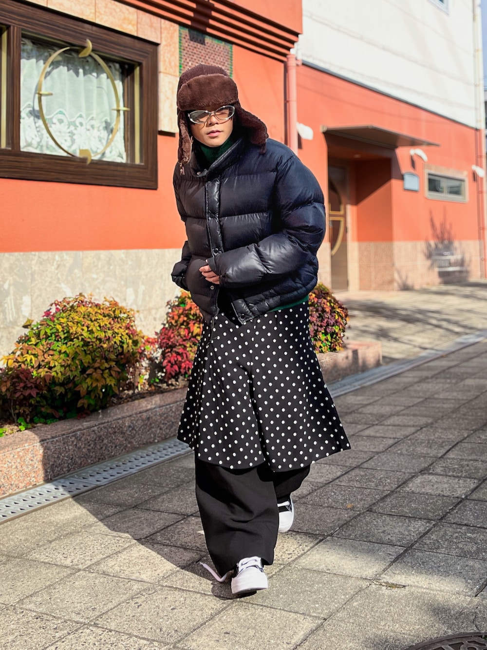 ご覧いただきありがとうございます😊 今回はフライトキャップを用いて コーデを組んでみました!!! 流石に最近は寒い日が続くので 暖かくなるアイテムをコーデに入れたくなりますよね!!! フライトキャップはクリーンなコーデにも ストリートなコーデにもフィットするので とてもオススメのアイテムになります!!! 色としては 寒色のアイテムが多い方はグレーなどの色合い 暖色のアイテムが多い方はブラウンなどの色合い これらを選択すると相性がいいと思います! また、白黒はどんなアイテムとも相性がいいので 1番使い勝手がいいと思います!!