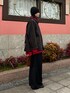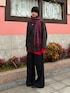 ダークなトーンを基調に、レッドのインナーとチェックマフラーで差し色を効かせたスタイリング。 シンプルながらも重ね着で奥行きを出し、クラシックな雰囲気に仕上げました。 身長169.5cm 体重53kg