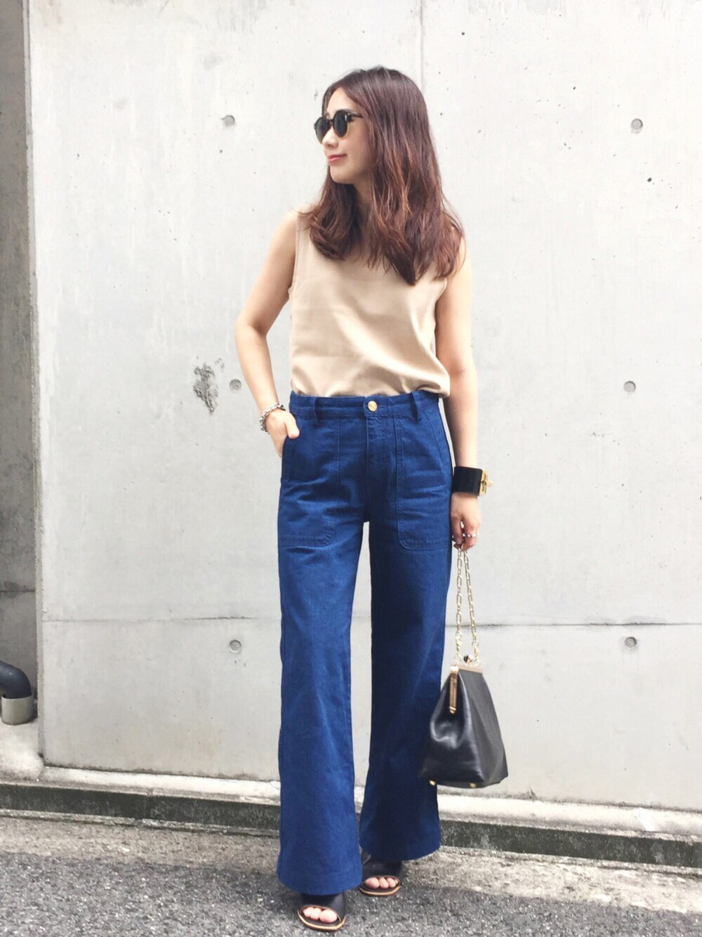 デニムとベージュの夏スタイル♡ 小物はブラックで統一✔︎