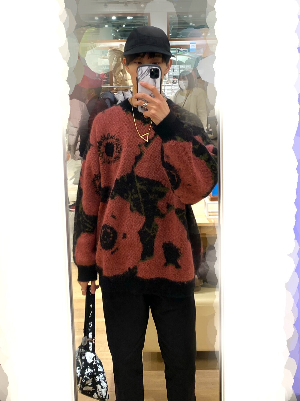 総柄のニットを主役にしたコーディネートです。お気に入りです。