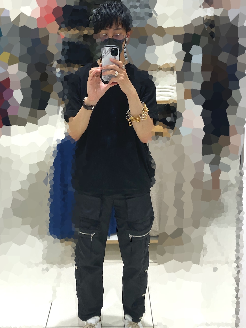 久しぶりに買い物で外へ出ました。 オールブラックコーデですが、足もとには白色のマルジェラのジャーマンを合わせました。アクセサリーもたくさんつけています。sacaiのリングブレスレットは存在感があって、お気に入りです。