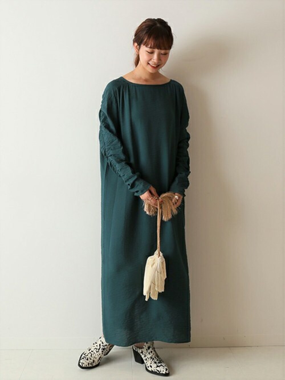 RURIのワンピース「ギャザースリーブ マキシドレス◆」を使ったコーディネート