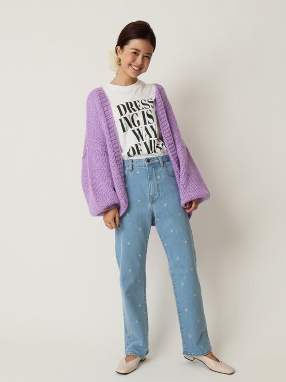 Moeのカーディガン/ボレロ「ローゲージ ハンドニットカーディガン◆」を使ったコーディネート