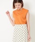 シンプルなデザインのノースリーブプルオーバーは色味がキレイなオレンジ色をセレクト。 シルエットのキレイなサマーニットは、お気に入りのドット柄スカートと合わせたスタイリングがお気に入り。