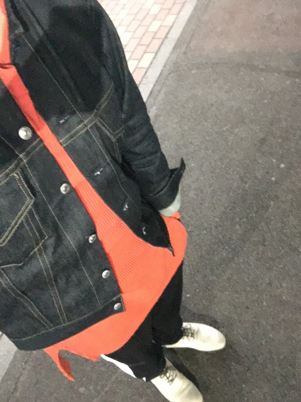 ブラッドオレンジ系のニットパーカーで存在感を出しつつ、ジャケットで抑える オレンジのニット帽を被ってもイイかも