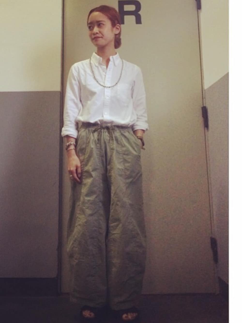 うちのディレクターがOXBDシャツぱっくり開けやってたから真似してみました。 ジュエリー多めで女らしくしてみた(つもり