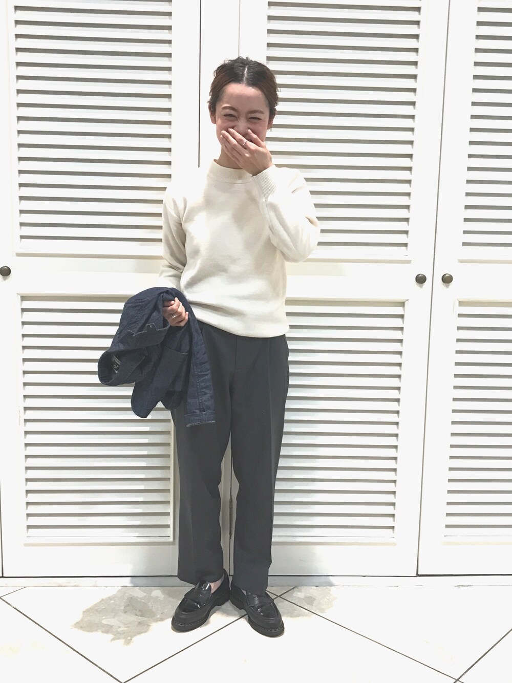 マリンニットにスラックスのシンプルな合わせです。 秋冬に買ったギャバスラックスは初春にも活躍してます!