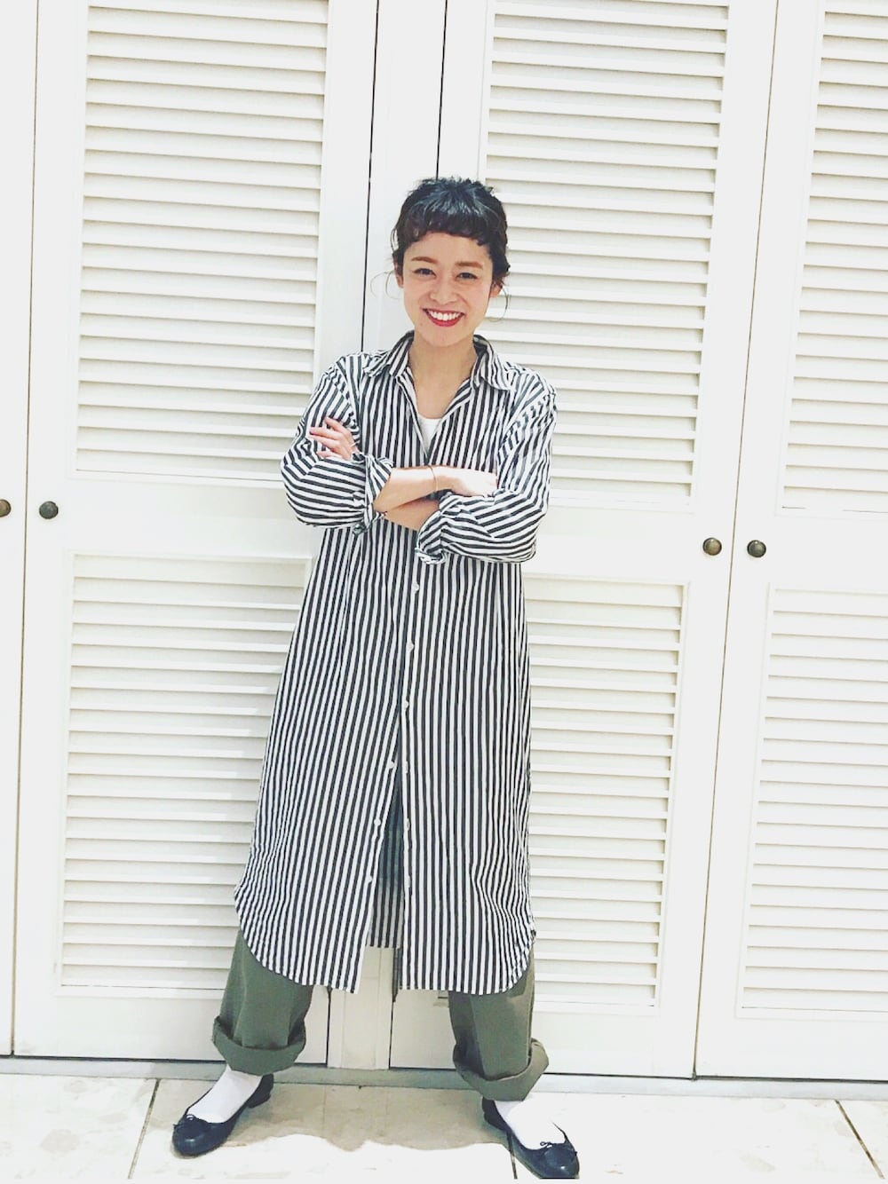 maruyama ayakaのシャツワンピース「BEAMS BOY / ストライプ B.D. シャツワンピース」を使ったコーディネート