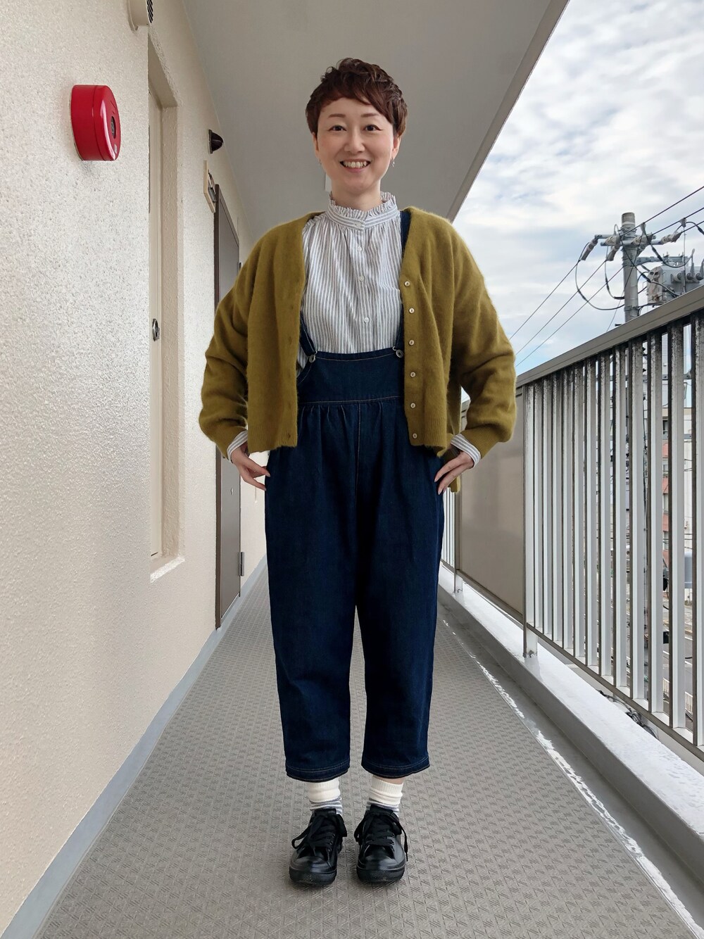 今日は気分転換に 公園に行ったんですが、 細かい虫がわんさかいて このカーディガンに埋もれてて 家帰ったら悲鳴あげましたね…😇 ベランダでめちゃふりまわした カーディガン… 虫怖い… このオーバーオール、 昔はよく着てたんですが、 年齢的に大丈夫じゃろか…と 着てなかったものの… まだ、いいですよね(多分)