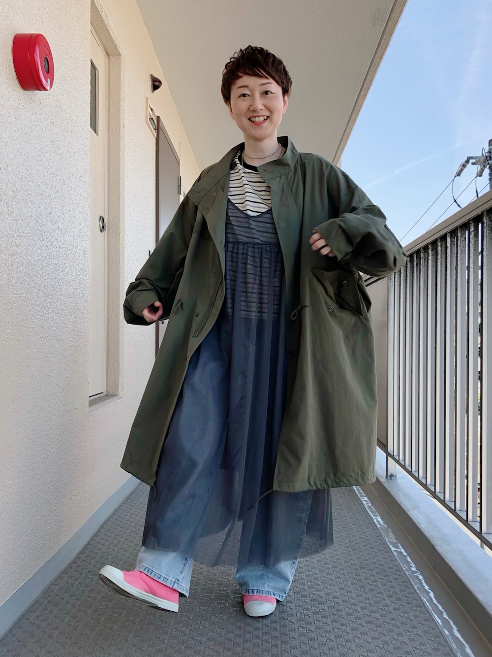 レイヤードが流行り…という事で チャレンジしてみました いかがでっしゃろか。 今日は暑いですね! もう家にずっといたい…な 気分です。 クリーニングと 食材だけ買いに行こ。
