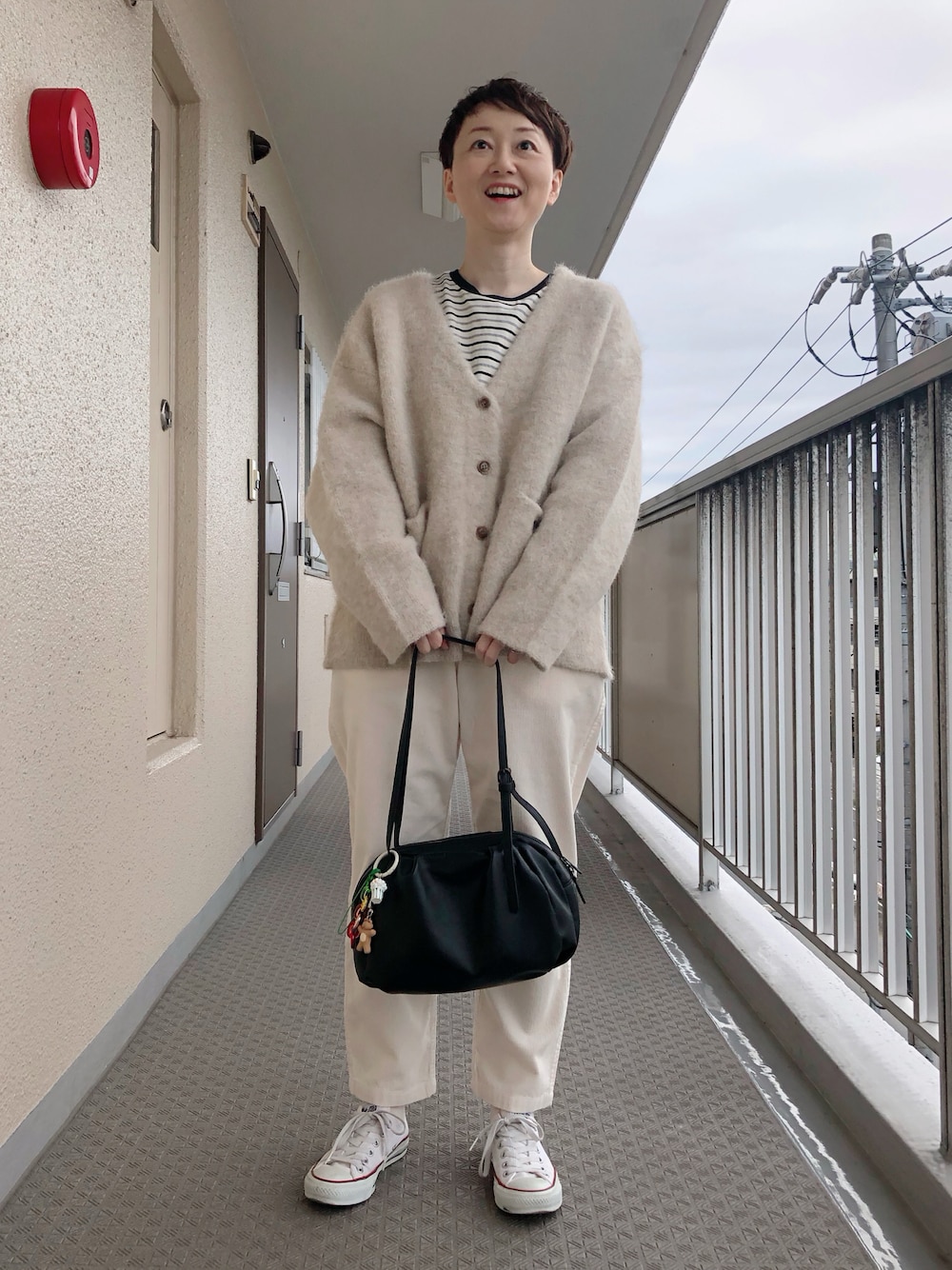 ふわふわカーディガン 買いましたー🤤 モデルさんが着てるコーデの 真似をできる範囲でしてみた… 白面積多いコーデは 今の自分にはハードル高いかも…🤤