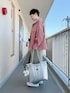 アウター。サーモン?ちょいくすんだ ピンクなので、チャレンジ しやすかったです… デニムがもうちょいチラ見えする 予定でしたが、ならなかった… ので、輪ゴムで調整しましたが、 出かけたらもういっか…となり 外しました😆 外の日陰は涼しかったですけど、 日向は暑かったですね
