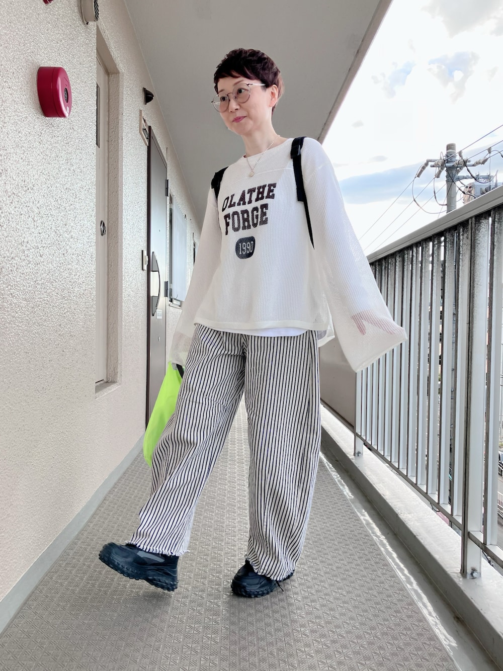 うちこのニット/セーター「カレッジメッシュプルオーバー」を使ったコーディネート