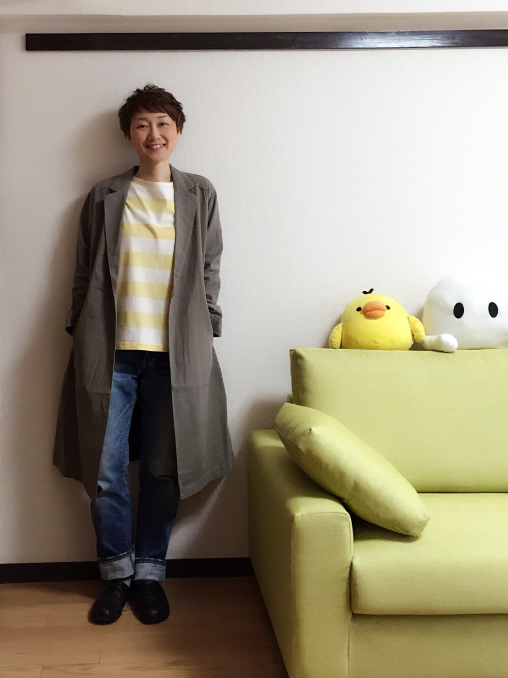 うちこのチェスターコート「フレンチリネンチェスターコート」を使ったコーディネート