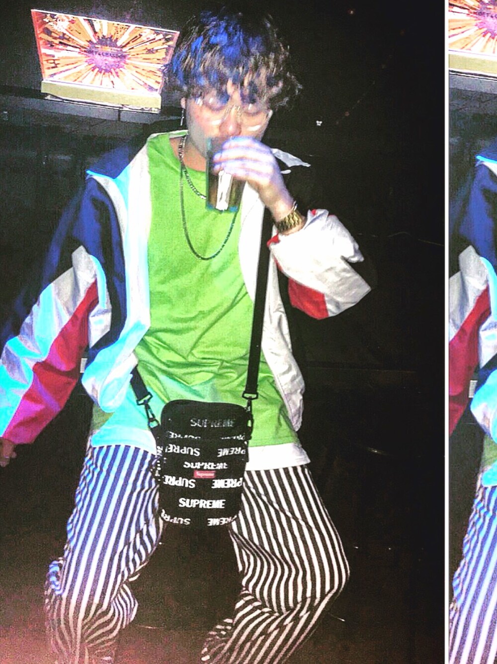 グリーン系のTシャツ/カットソーを着用したメンズの春コーディネートの1枚目の写真