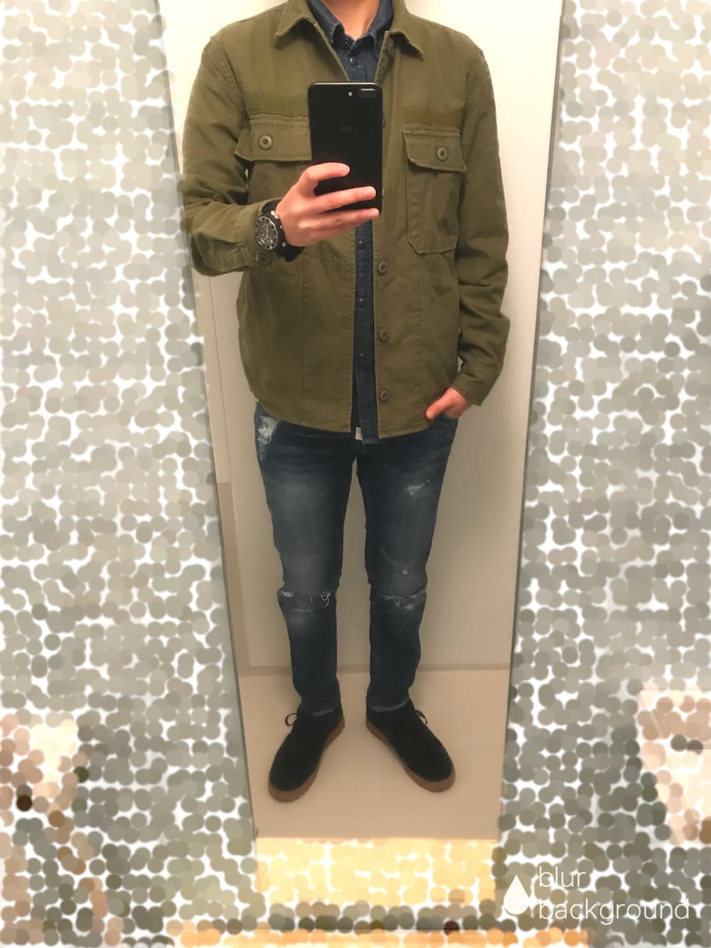うっちゃるのミリタリージャケット「20ツイル/8.8オンスデニム生地 ファティーグシャツ」を使ったコーディネート