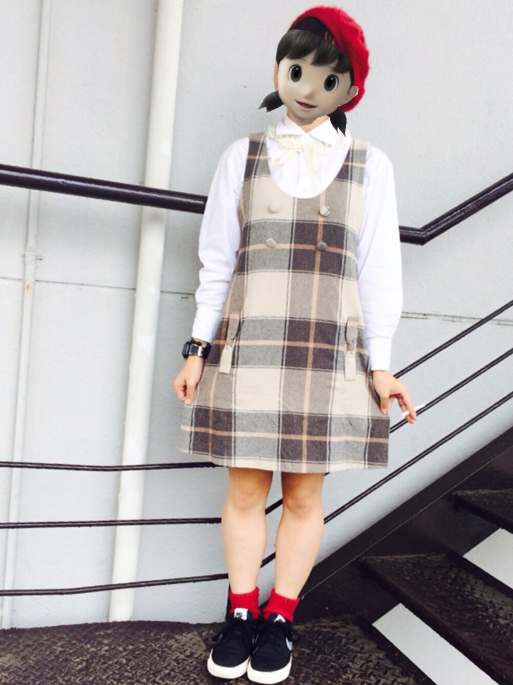 今日のサブタイトル。 ちゃっかりおめかし外行き小娘! タッセルローファ履きたいと思いながら スニーカーで外しちゃったよ… コーディネートです。 シャツ:GAP サックワンピ:RETRO GIRL パールつけ襟:RETRO GIRL ファーベレー:RETRO GIRL スニーカー:NIKE SB