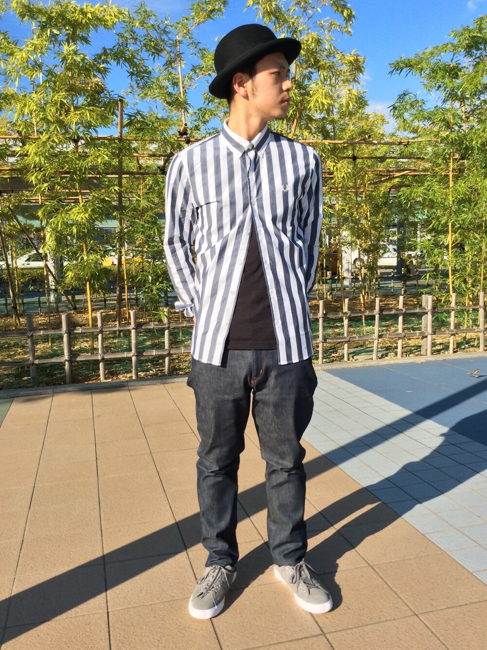 こんにちは。 金沢店の山内です! 今回は新作のシャツと太もも周りにゆとりのあるデニムを使ったコーディネートになります。 トップスはジャストサイズであえてパンツは大きめを履くことでストリート風の印象に。 ストライプのシャツでモノトーンでまとめ大人カジュアルな仕上がりに。 金沢店では下記リンクにて毎週HPも更新しておりますので是非ご覧くださいませ(*^_^*) http://www.100bangai.co.jp/tenantinfo/fred-perry/