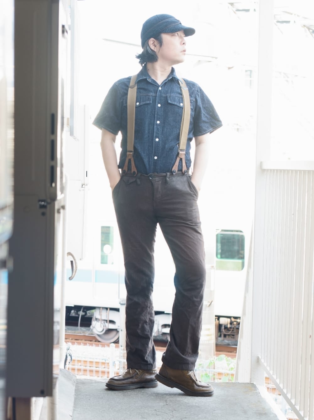 ちょっと太めのワーク系サスペンダーが主役。、