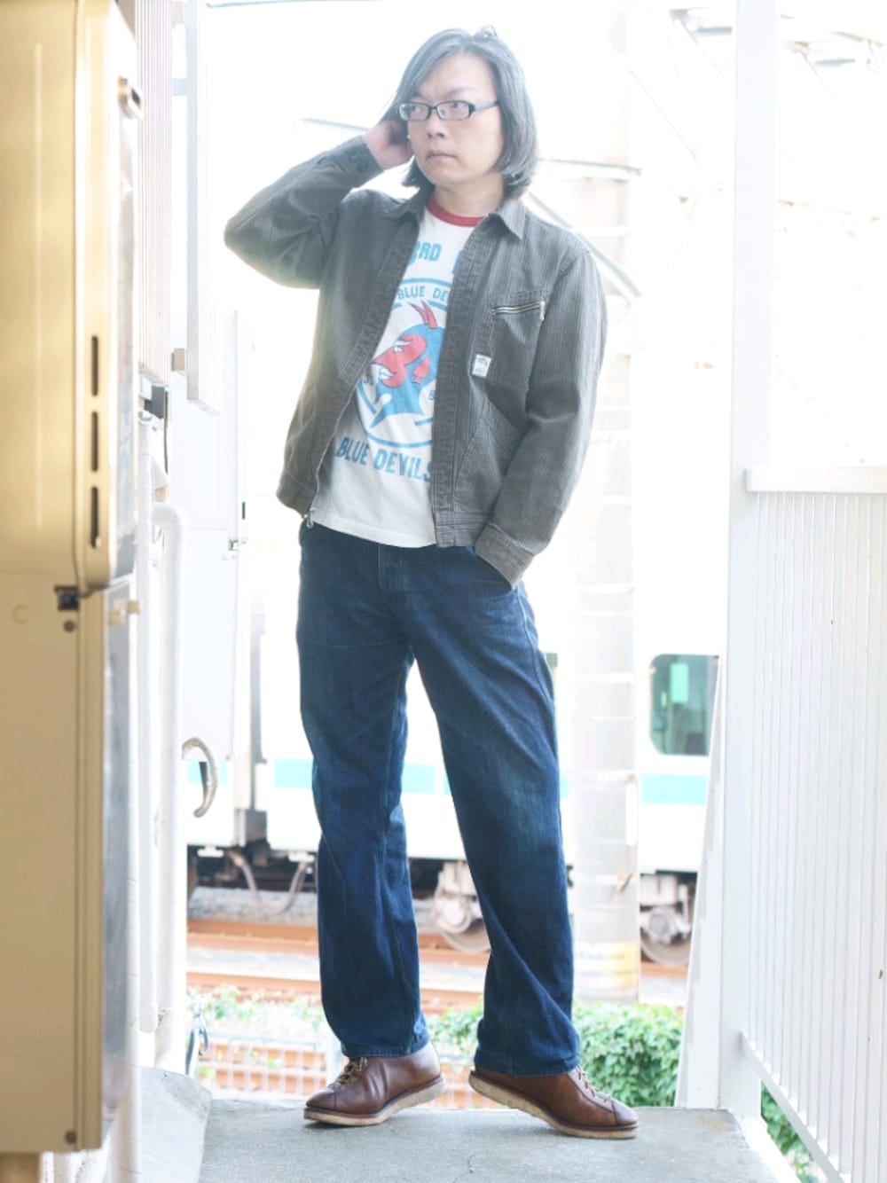 ジェラード、トロフィークロージング、ブートレガース、クッシュマン……コテコテの和製アメカジ。 アメカジ雑誌のんかでは、定番も定番のコーディネートなんでしょうね。