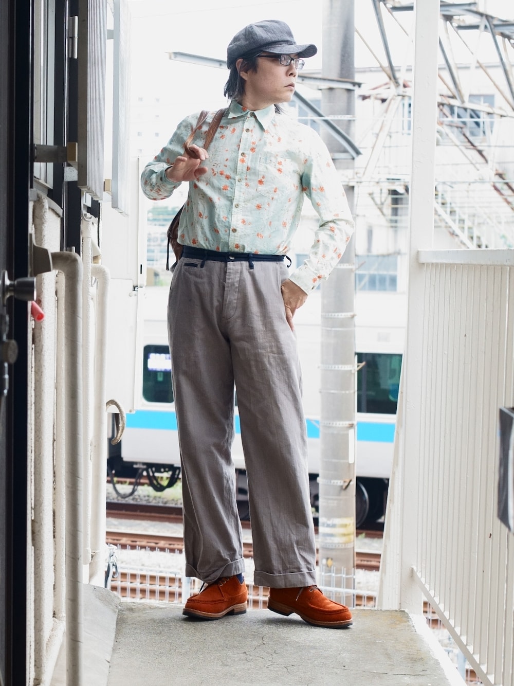 ミュラー&ブロスのワークパンツがコーディネートの主役。