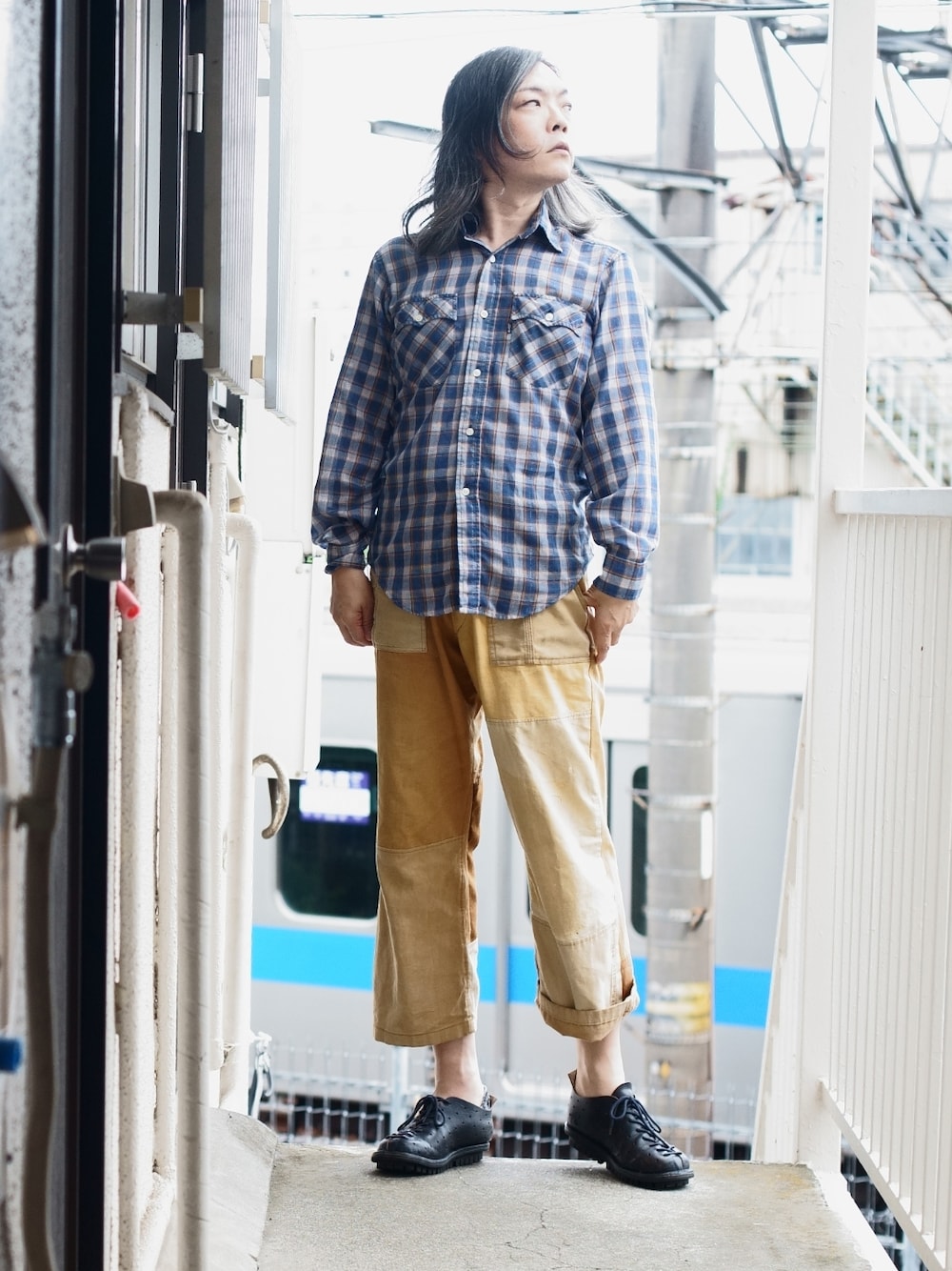 パッチワークのダック地パンツが主役。 パッチワークアイテム好きになった切っ掛けの1本。 二子玉川で迷いに迷って買った1本でした。