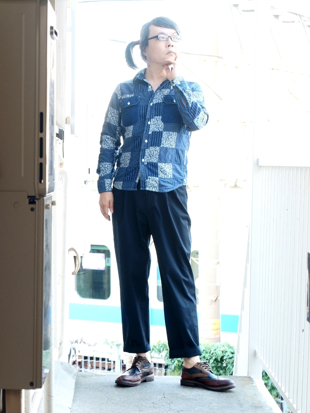 パッチワークシャツがコーディネートの主役
