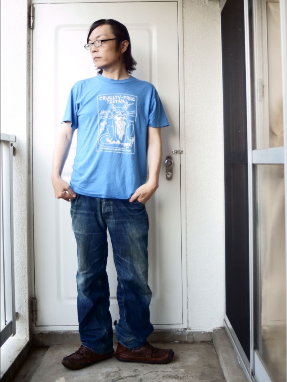 古着のTシャツがコーディネートの主役。