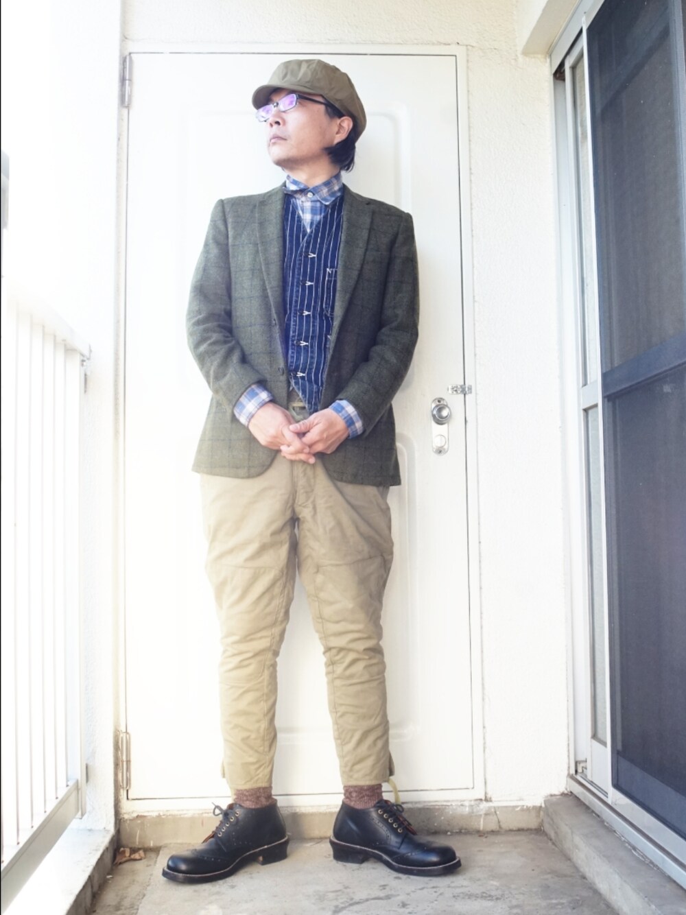 旧日本軍のパンツがコーディネートの主役。