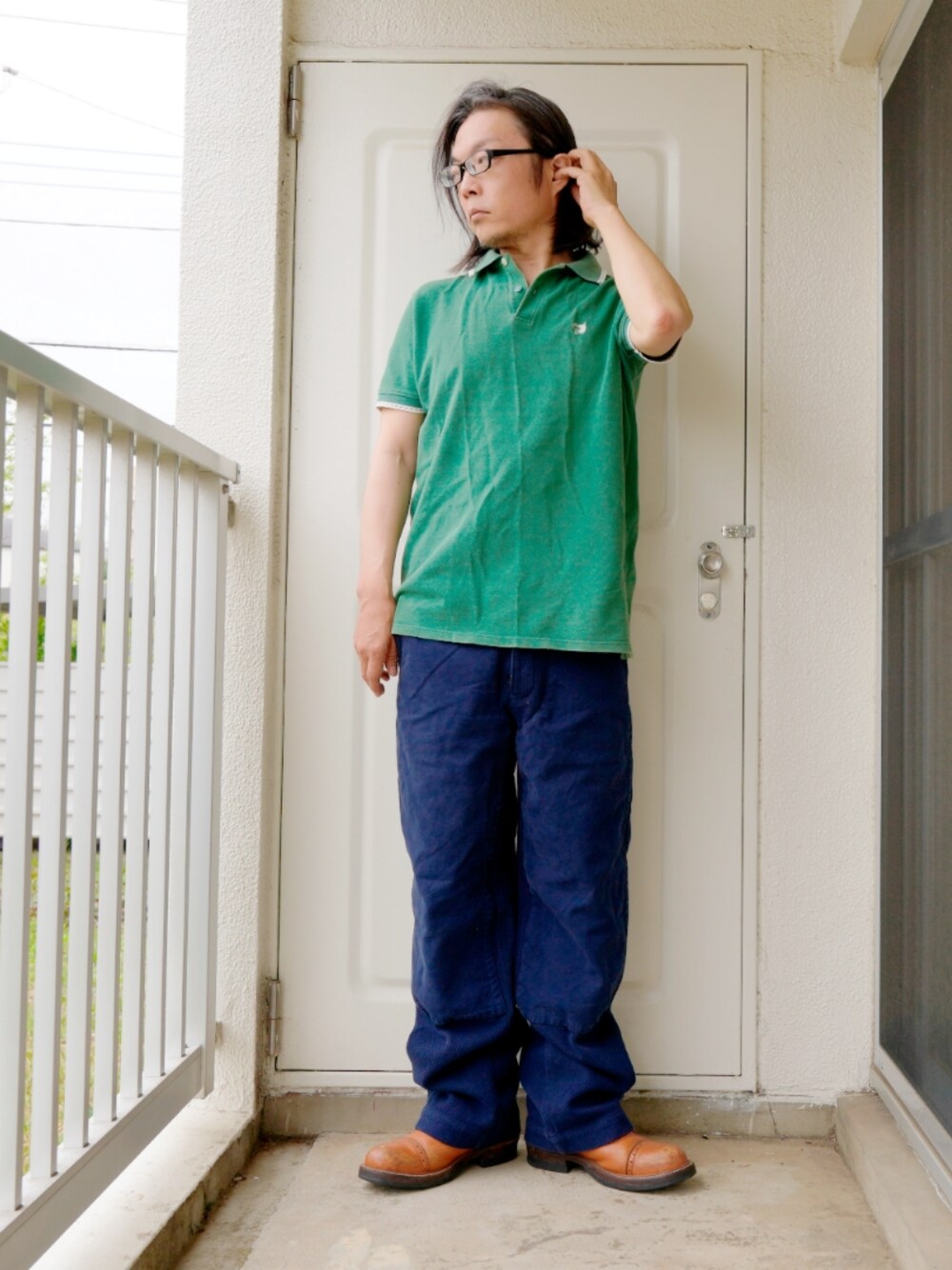 ポロシャツがコーディネートの主役。
