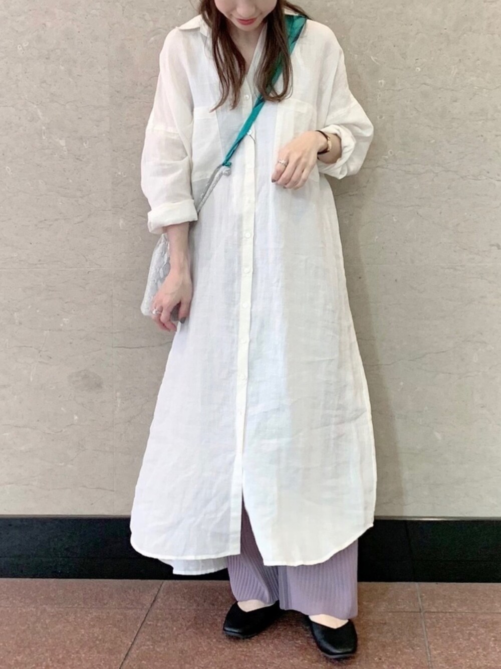 risaのシャツワンピース「F by ROSSO リネンロングシャツワンピース」を使ったコーディネート