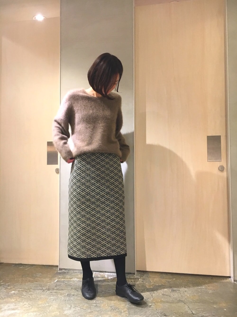 肌触りのいい、ラクーンニット×スカートで大人っぽく!