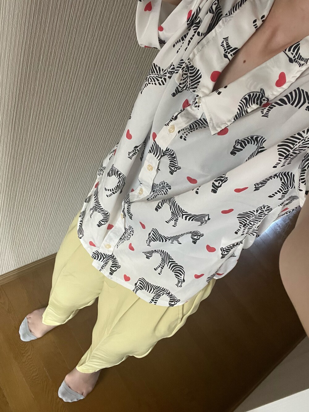 おはようございます😃 いつもご覧頂きありがとうございます😊 いいね👍お気に入り登録等も併せて 感謝いたします! 本日のコーデはこんな感じで 着やすさ重視です笑 久々にインパクト大のシマウマ🦓シャツ