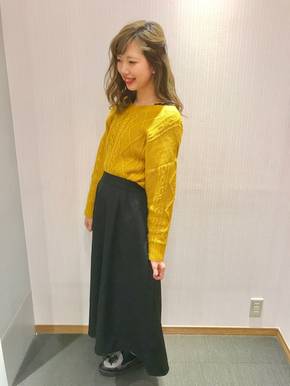 こんばんは! 2wayトップスを今日はプルオーバーで着ました◎ インナーにレーストップスを合わせたら、Vネックのラインから見えてかわいいです◎ スカートは無地の黒を合わせて、マスタードカラーを引き立たせました☆ Instagram▷▷ucmuuu
