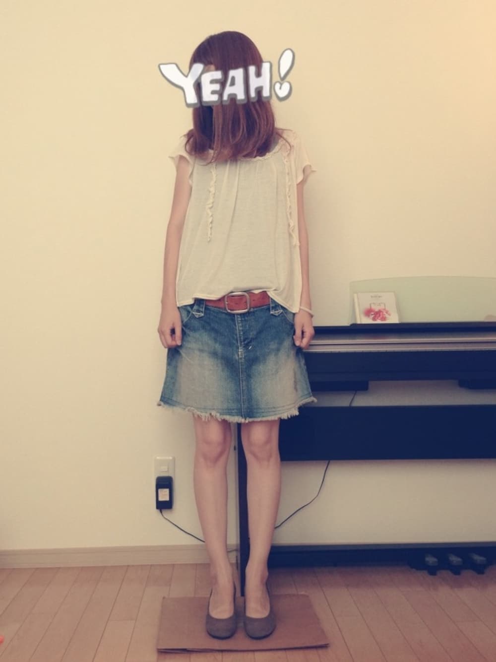 Uのデニムスカートを使ったコーディネート