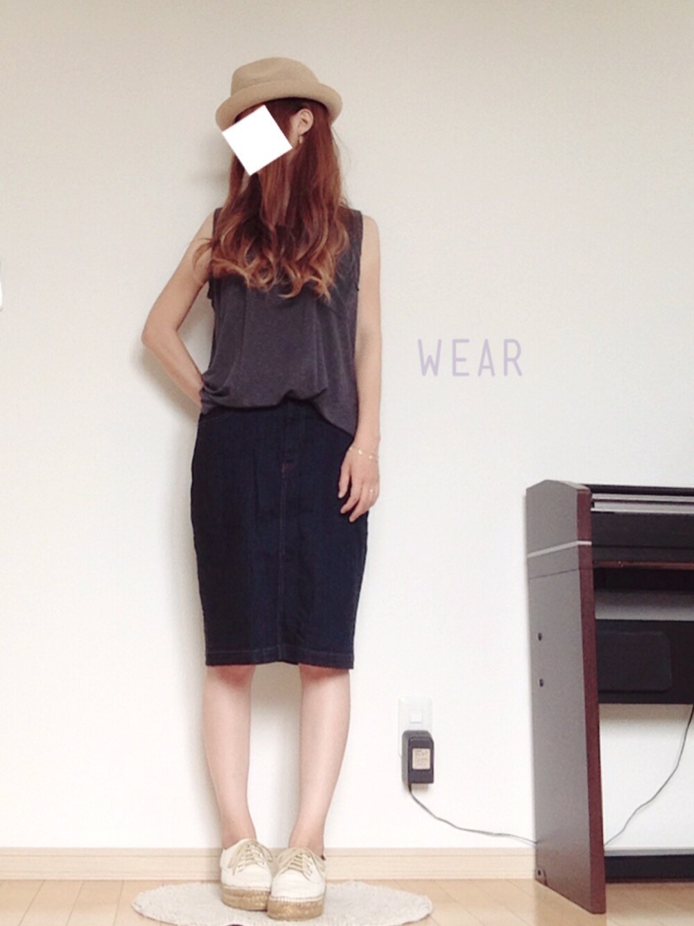 タンクトップ×デニムスカート☺︎ 暑いねー☀︎ 今日も暑そう☀︎ 園の送り迎えはなるべく自転車で 行くようにしていて、アームカバーは 必須!それでも既に日焼けしてる☀︎ アームカバーって、数年前までダサいと 思ってたのに。いまや必需品。。