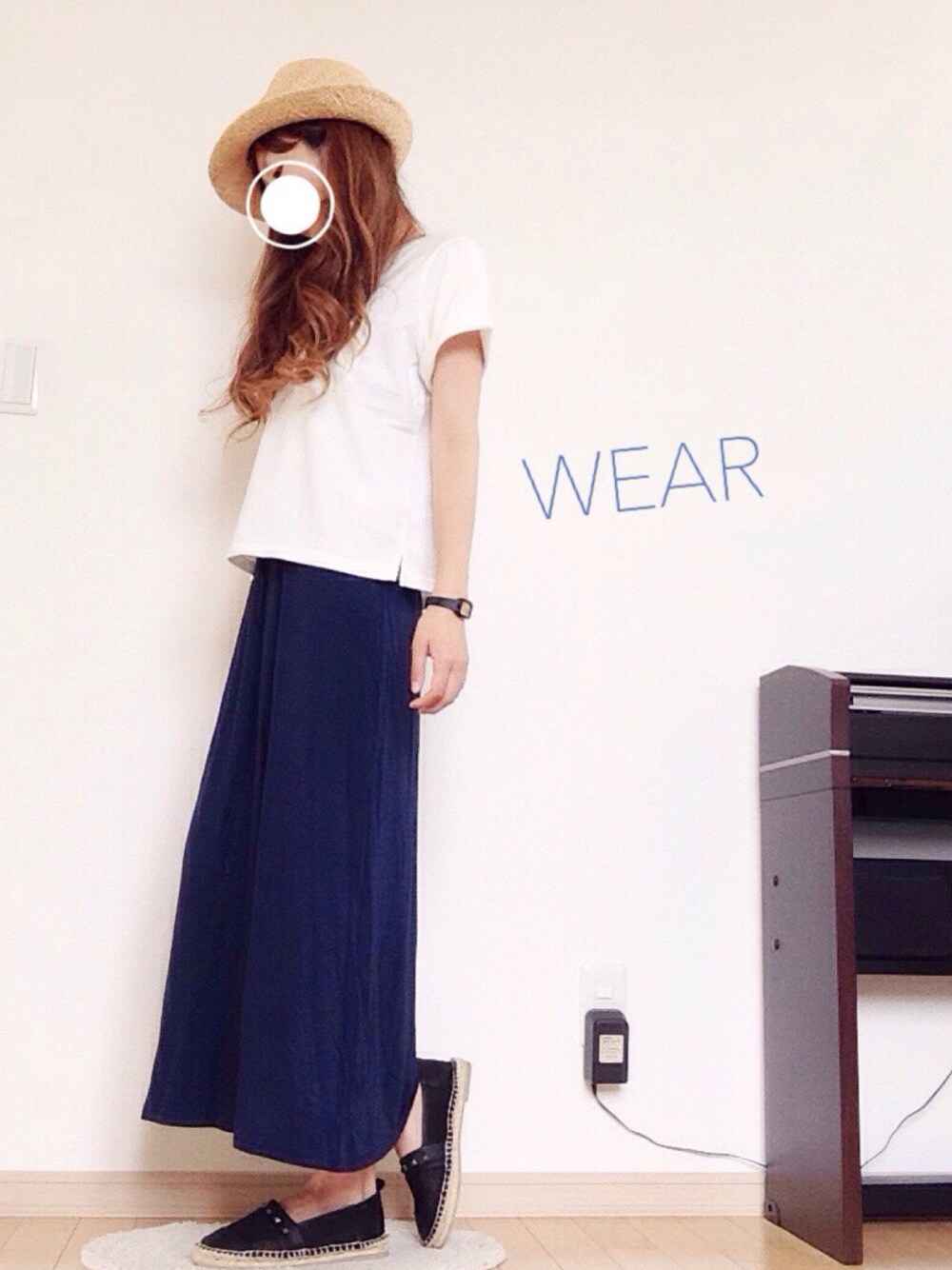 ホワイト×ネイビー☺︎ マキシワンピにTシャツ。 楽ちんスタイル。