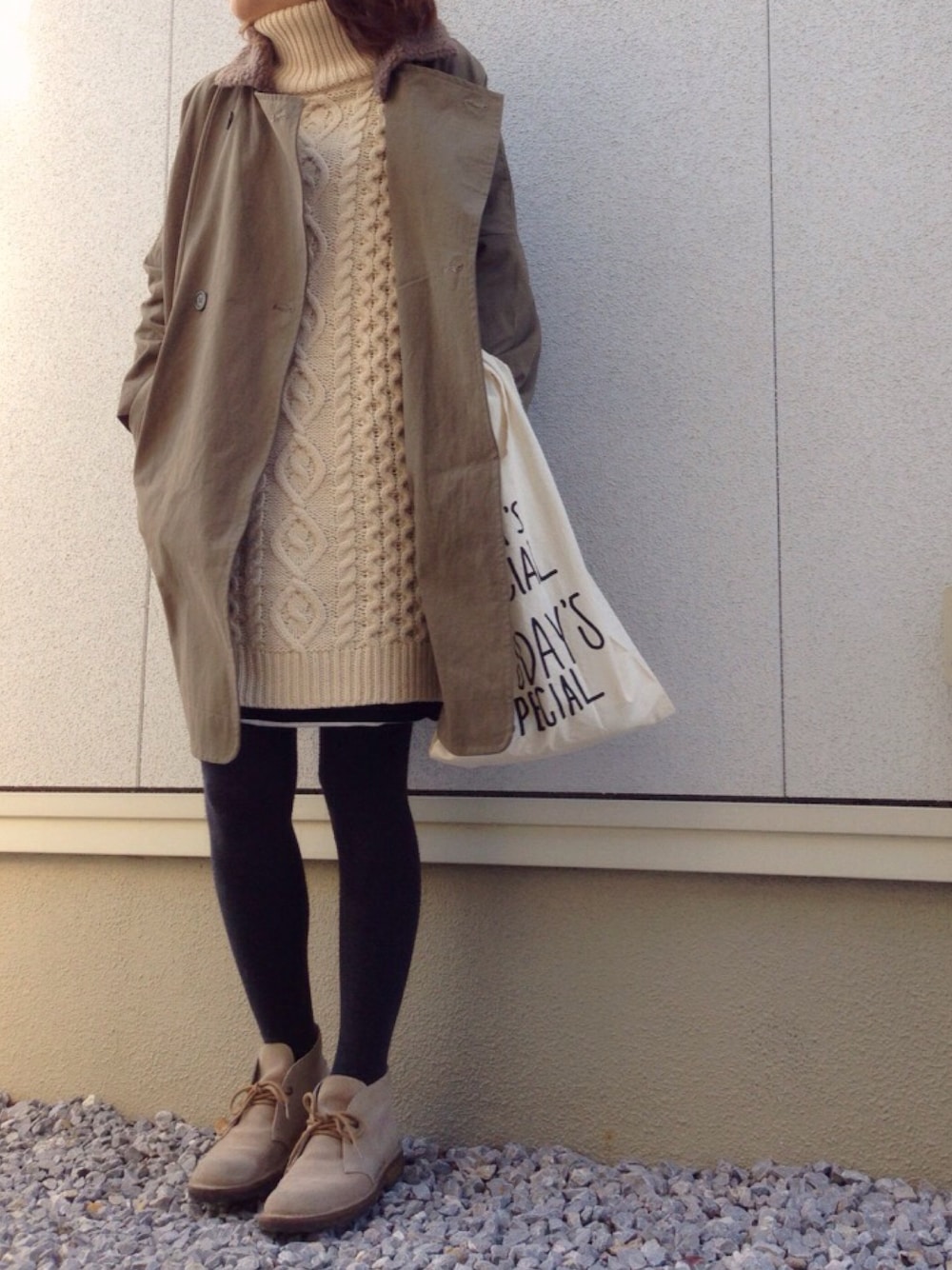 このワンピには このコートがぴったりでした! お気に入りのデザートブーツ。