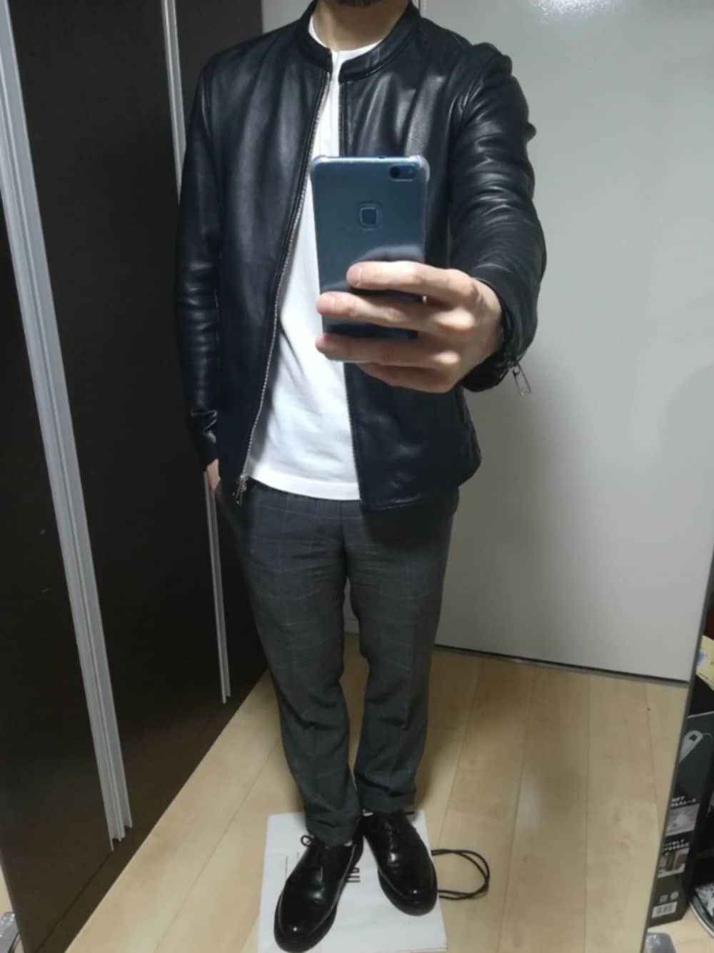 ライダースとユニクロのチェックバンツの相性良いな~。 このパンツもかつての仕事用。